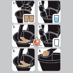 On commence tout d’abord par verser les 3/4 du volume d’eau nĂ©cessaire en mĂ©langeant Ă©nergĂ©tiquement avec la main dans un seau rond pour permettre aux particules de l’amorce de se gorger d’eau.