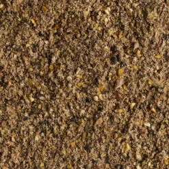 MaĂŻs, chapelure, biscuit, tourteaux de coprah, lin applati (10%).