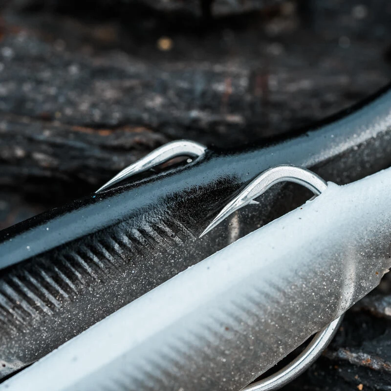 Nous avons développé cette forme d’anchois 3D pour toutes les pêches en lancer-ramener entre deux eaux, près du fond ou en verticale. La nage de type « Paddle » émet de fortes vibrations grâce au « frétillement » et au balancement de la caudale.