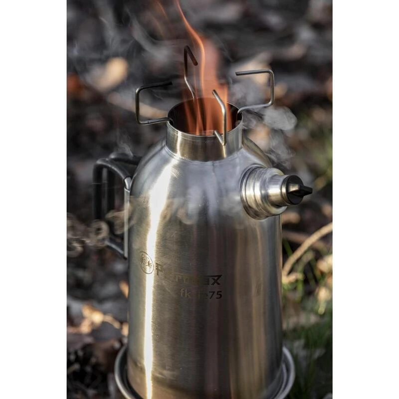 Faites bouillir l’eau rapidement et facilement avec le chaudron Ă feu double paroi Petromax. Pendant que le feu crĂ©pite dans la cuve, la chaleur monte vers l’intĂ©rieur de la casserole. L’effet de