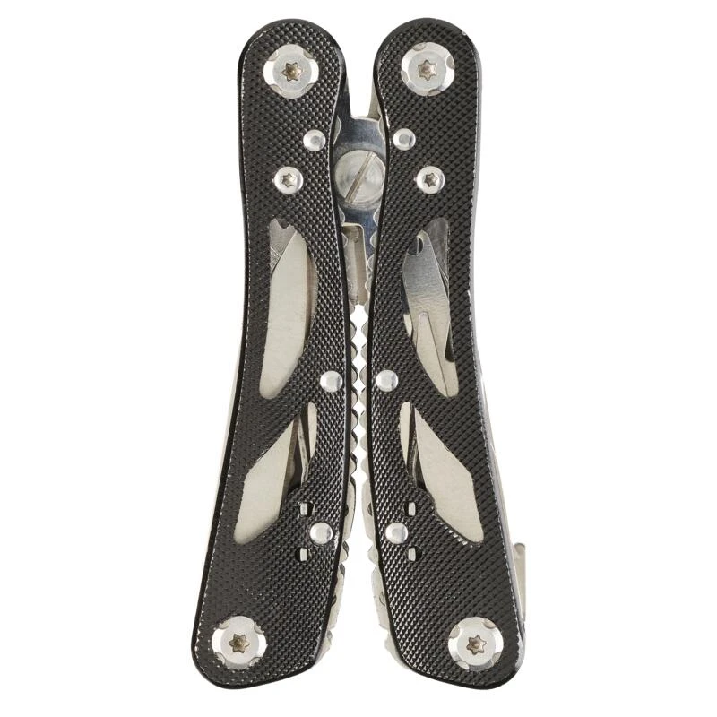 9 outils, + de 12 fonctions dont une pince qui coupe la tresse, les nylons et les fluorocarbones, serre les sleeves et ouvre les anneaux brisés.