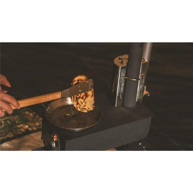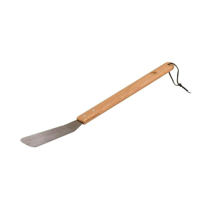 Spatule pratique avec un look rustique, parfait pour cuisiner sur un feu de camp grùce à sa longue poignée. Livré avec une boucle en cuir pour le suspendre.