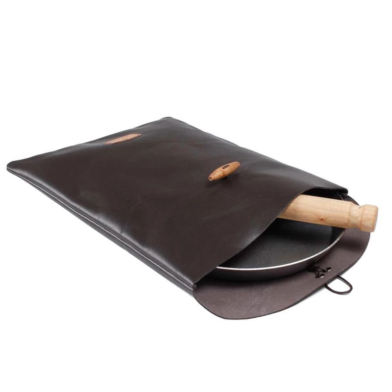 Le couvre-pot de rangement en cuir Stabilotherm avec cordon de serrage, idéal pour les poêles de chasse jusqu’à 18-22 cm de diamètre !